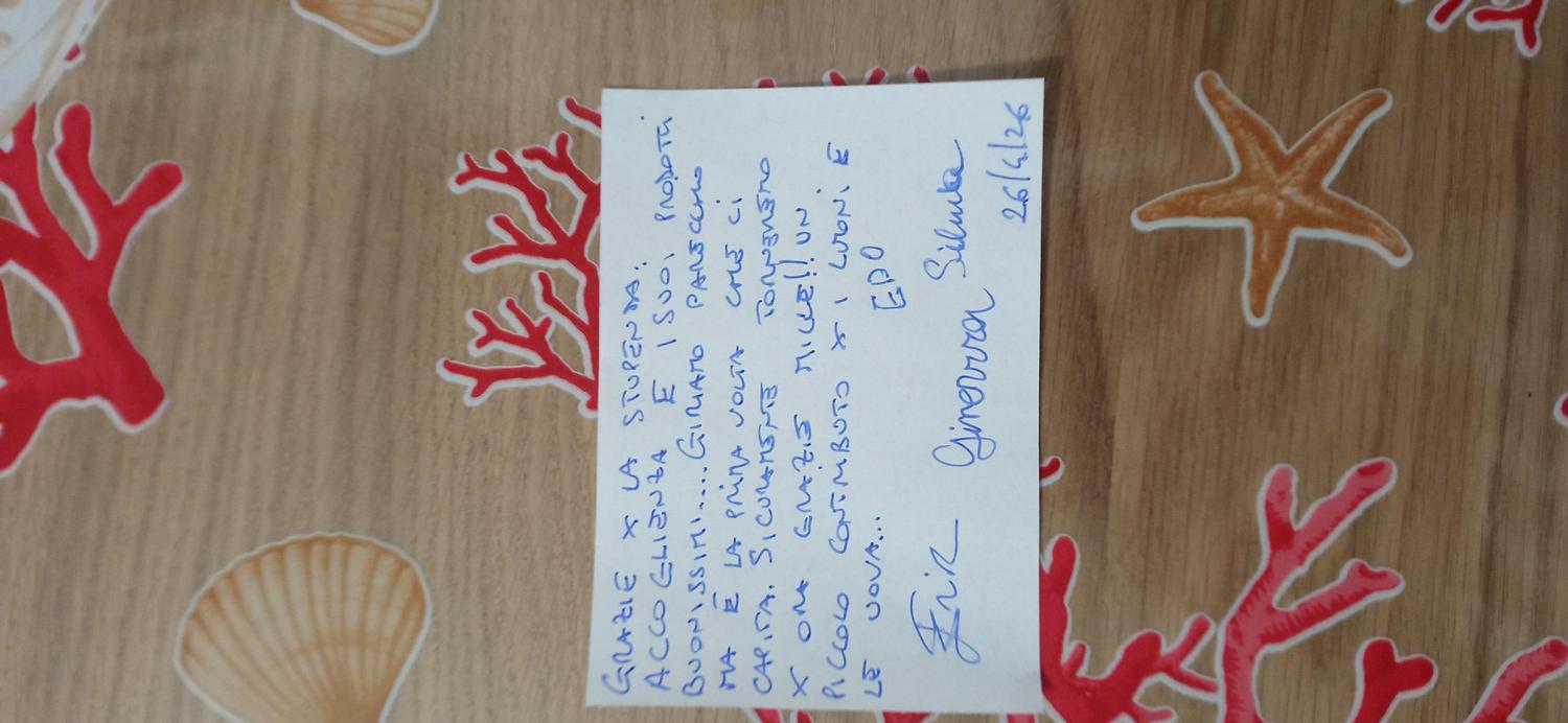 Grazie! 27-Apr-2026Grazie di cuore x il bigliettino! Fanno piacere queste opinioni e pareri dei clienti. Un abbraccio Barbara